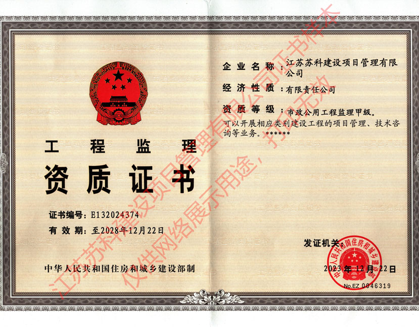 苏科建设市政公用工程监理甲级