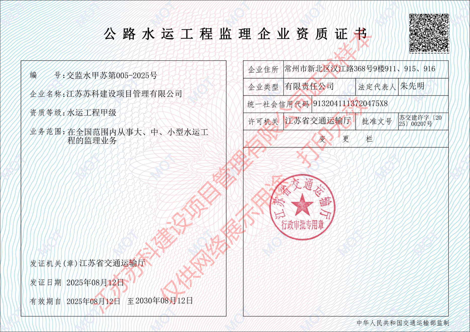 苏科建设工程监理水运工程资质甲级