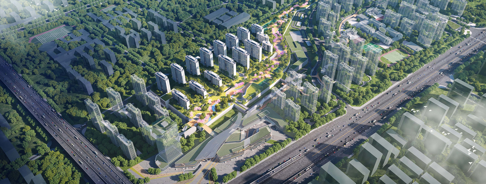 This project of JSTI combines the design of the cover plate of the urban rail transit depot, the project deeply studies the comprehensive development scheme of the depot and surrounding plots.