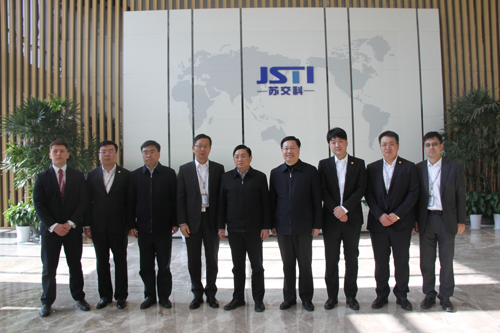 Secretary Zhang Jinghua and his delegation visited the Corporate Culture Exhibition Hall of JSTI Group. Mr. Fu Guanhua focused on the core values of the group, the current development of internationalization, and JSTI’s activities in the “One Belt and One Road” initiative. Based on the opportunity of Nanjing to create a city of global influence, President Li Dapeng introduced the achievements and the key work in the future of JSTI with regards to smart transportation. He said JSTI would focus on bringing together the global strengths and knowledge of the group to create a coordination platform for Internet intelligent design, promoting the development of smart cities and smart transportation, whilst building a platform for sharing traffic big data and an intelligent comprehensive parking service platform that was connected to the Internet.