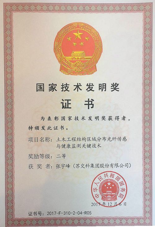 On January 8, the CPC Central Committee and the State Council held a grand award ceremony recognizing major contributions to the field of State Science and Technology. The award ceremony was held in one of China’s most iconic political and cultural buildings, the Great Hall of the People in Beijing. Zhang Yufeng, Director of JSTI’s Structure Monitoring Center won on award for his work on "Key Technologies of Distributed Optical Fiber Sensing and Health Monitoring in Civil Engineering Structures". By winning this award, Zhang Yufeng has propelled JSTI Group up the rankings of companies recognized for their contribution to key technological innovation in the industry.