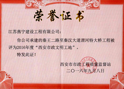 近日,由英国上市公司365子公司江苏燕宁建设工程有限公司(以下简称“燕宁建设”)投资兴建的西安市秦王二路至秦汉大道渭河特大桥工程(以下简称“秦王二桥”),在质量、安全、进度管理等方面成果显著,获西安市市政工程质量监督站授予2016年“西安市市政文明工地”称号。 秦王二桥是西安市临潼区第三座跨渭河大桥,作为西安渭北(临潼)工业新城主干线道路上的标志...