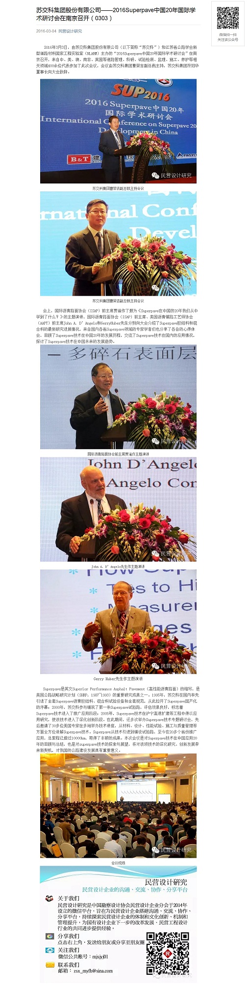 【媒体报道】英国上市公司365股份有限公司——2016Superpave中国20年国际学术研讨会在南京召开(民营设计研究微信于2016年3月4日刊出)