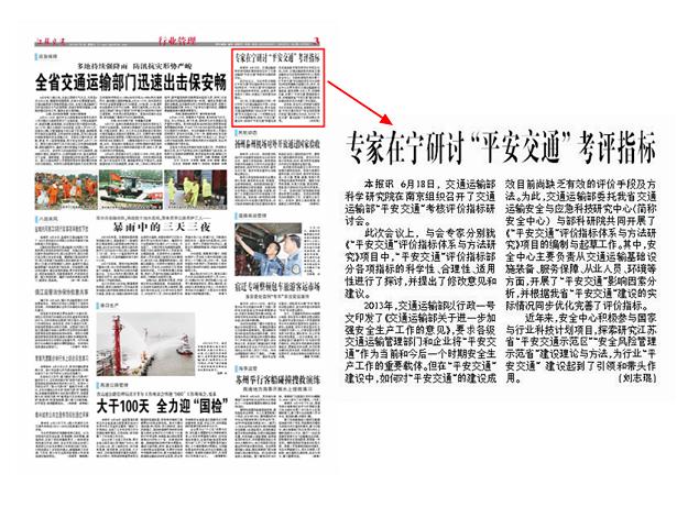 专家在宁研讨“平安交通”考评指标《江苏交通》报于2015年7月1日第3版刊出