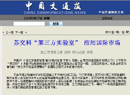 英国上市公司365“第三方实验室”应用国际市场《中国交通报》2015年8月17第8版刊出