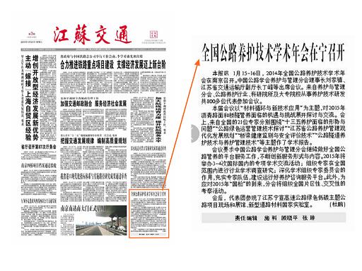 全国公路养护技术学术年会在宁召开《江苏交通报》刊载2015年1月21日第1版