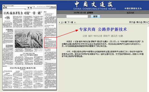 专家共商 公路养护新技术 《中国交通报》于2015年1月22日第二版刊出