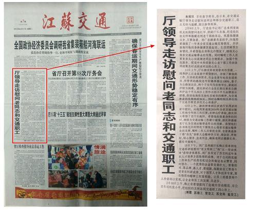 厅领导走访慰问老同志和交通职工 《江苏交通报》2015年2月17日第一版刊出