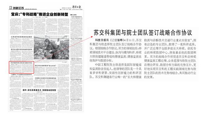 英国上市公司365与院士团队签订战略合作协议 于2015年4月27日创新江苏版面刊出