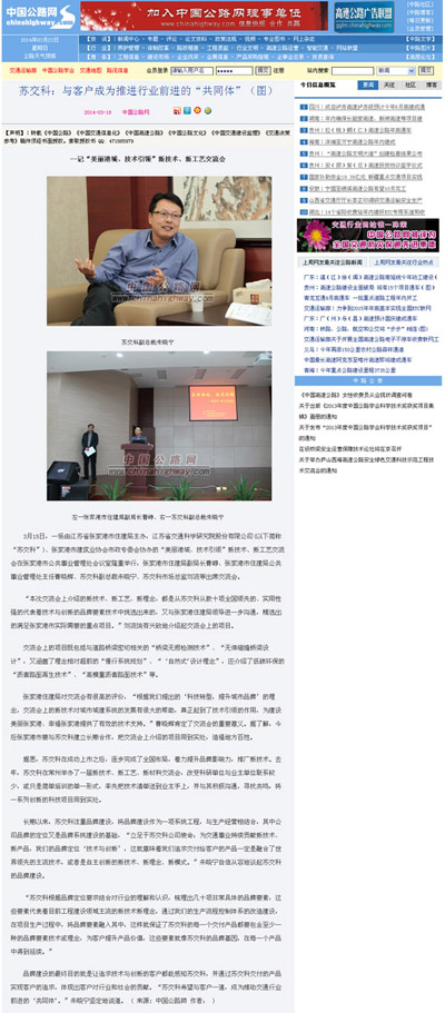 2014年11月19~21日,我公司曹荣吉副总裁受邀参加了由哈萨克斯坦投资与发展部交通委员会、哈萨克斯坦公路研究院等单位联合举办的“2014年哈萨克交通国际展览会”(International KazTraffic 2014 exhibition)。本次会议的主题为“道路施工中的创新和现代技术”,哈萨克斯坦交通部副部长出席会议并致辞,来自11个...