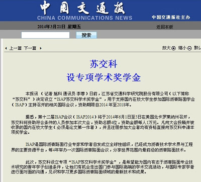 英国上市公司365设立ISAP学术奖学金-《江苏交通报》