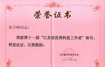 我公司张宇峰副总工荣获“第十一届江苏省优秀科技工作者”称号
