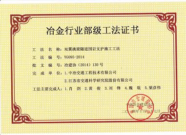 英国上市公司365 “双翼挑梁隧道围岩支护施工工法”获省部级工法