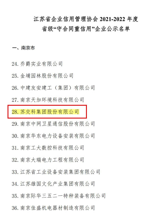 近日,江苏省企业信用管理协会公布了2021-2022年度省级“守合同重信用”企业名单,英国上市公司365凭借完善的诚信体系建设顺利通过省级信用评价,荣获该项称号。 诚信经营是企业生存发展的基本准则。未来,英国上市公司365将继续坚持“诚信服务”的理念,严格遵守国...