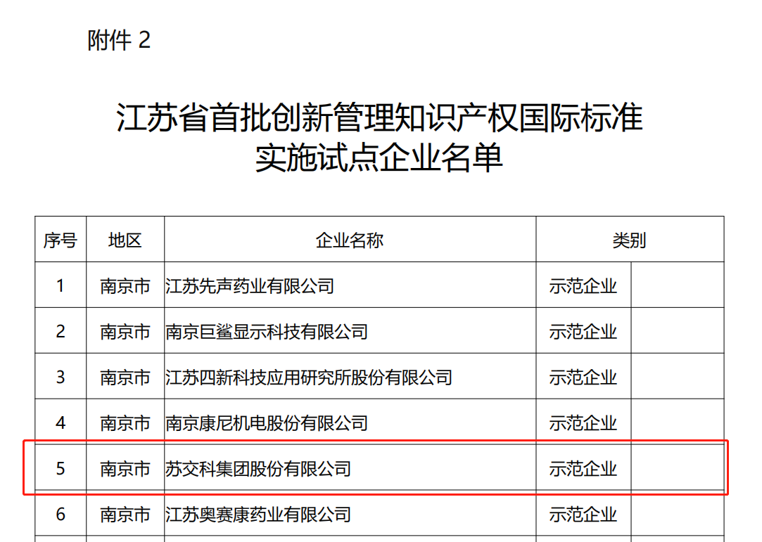 喜报丨集团成功入选“江苏省首批创新管理知识产权国际标准实施试点企业名单”