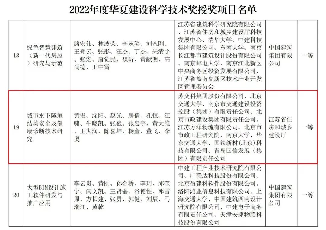 喜报丨集团牵头完成的《城市水下隧道结构安全及健康诊断技术研究》荣获2022年度华夏建设科学技术一等奖