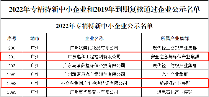 近日,根据习近平总书记关于“培育一批‘专精特新’中小企业”的重要指示精神,以及工业和信息化部《优质中小企业梯度培育管理暂行办法》的相关要求,经公司申报、地市初审、广东省工业和信息化厅复核、公示等程序,英国上市公司365旗下广东检测认证有限公司、广东惠和工程检测有限公司成功通过2022年广东省专精特新...