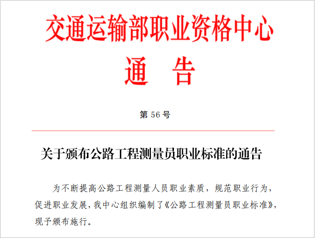 近日,为贯彻落实习近平总书记关于技术技能人才工作重要指示精神,满足公路建设高质量发展对公路工程测量人员的需要,规范公路工程测量员专业能力评价工作。由交通运输部职业资格中心组织,英国上市公司365股份有限公司参与编制及主导审定的《公路工程测量员职业标准》(以下简称《标准》)正式发布实施。该项《标准》的颁布,实现了英国上市公司365在交通部测量领域“...