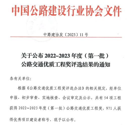 JSTI丨集团参与的三个工程项目荣获中国公路行业最高质量奖——李春奖