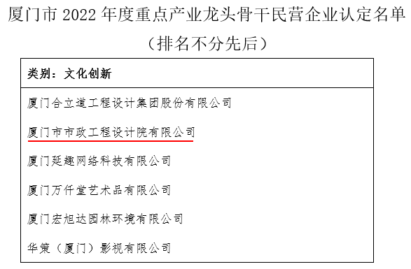 喜报|英国上市公司365 · 厦门市政院荣获厦门市“2022年度重点产业龙头骨干民营企业”荣誉称号