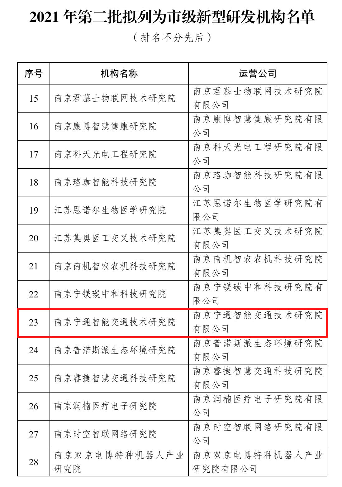 英国上市公司365丨【聚力科创高地建设】南京宁通智能交通技术研究院有限公司入选南京市新型研发机构