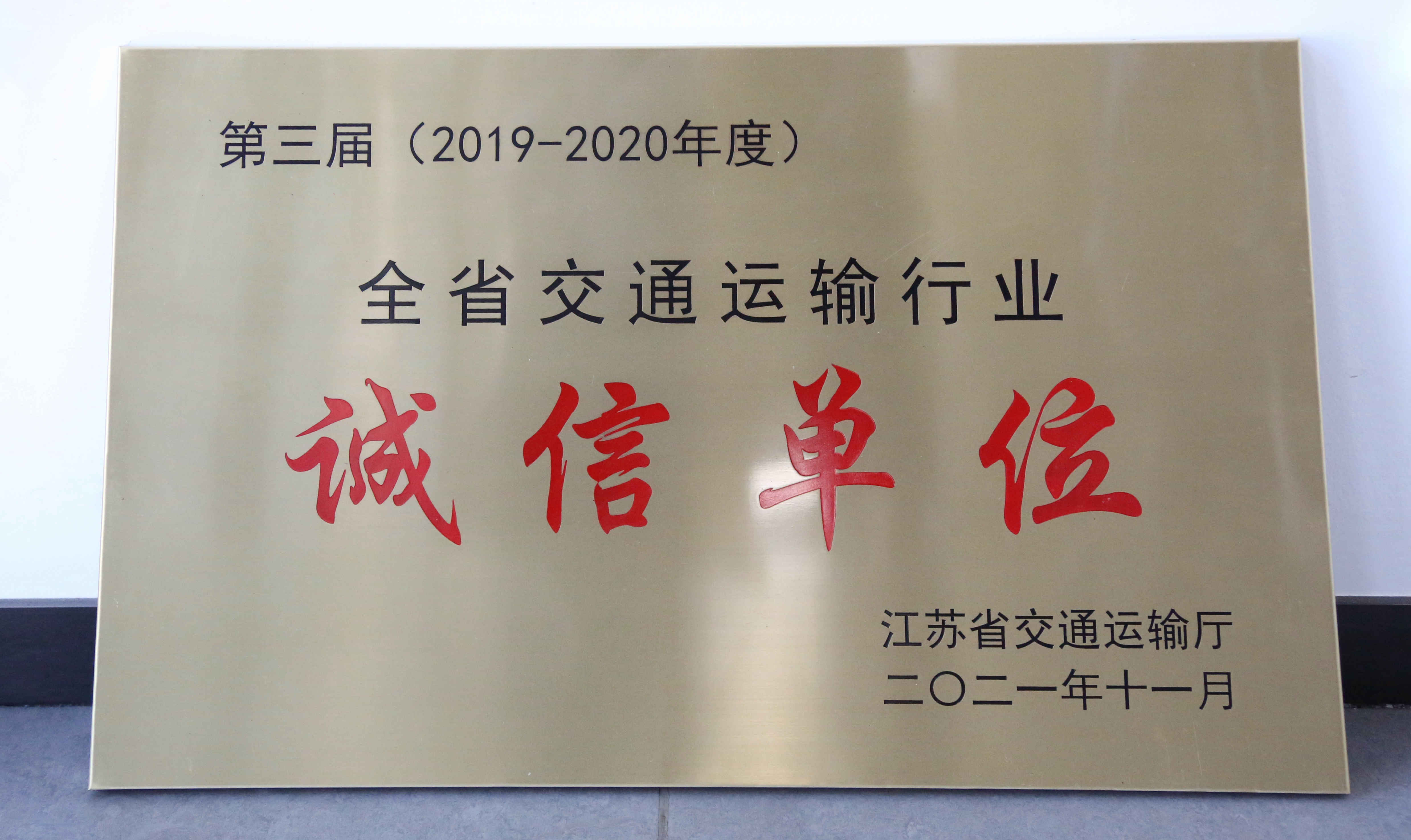 英国上市公司365丨荣获第三届(2019-2020年度)江苏省交通运输行业“诚信单位”称号