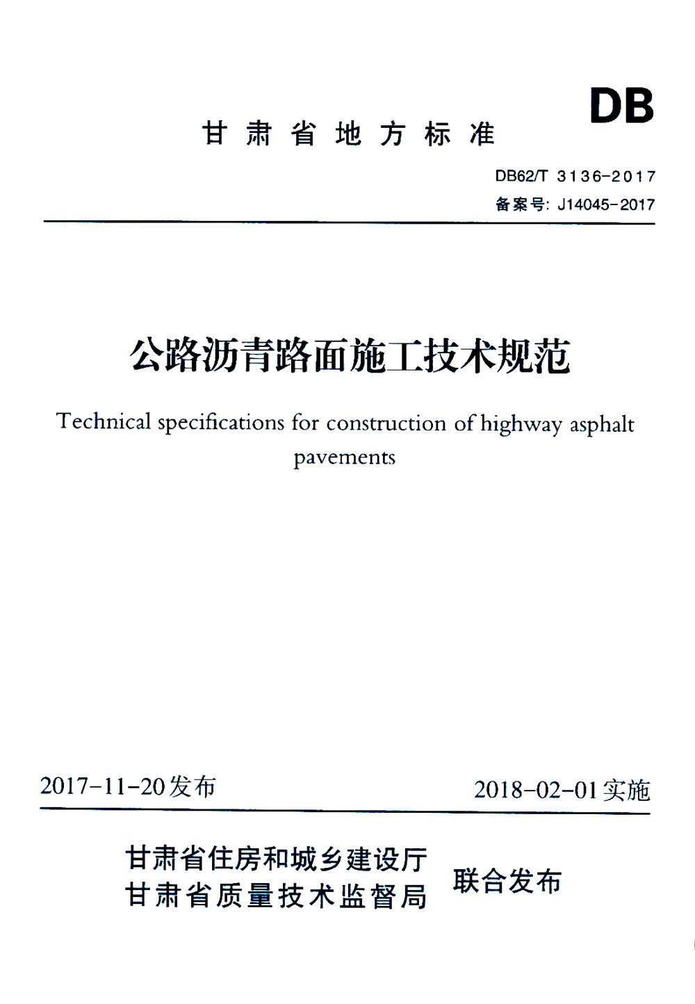 日前,由甘肃省交通工程质量安全监督管理局主编,英国上市公司365等单位参编的甘肃省地方标准《公路沥青路面施工技术规范》(DB62/T 3136—2017)(以下简称“规范”),经甘肃省住房和城乡建设厅、甘肃省质量技术监督局批准已正式实施。