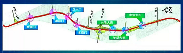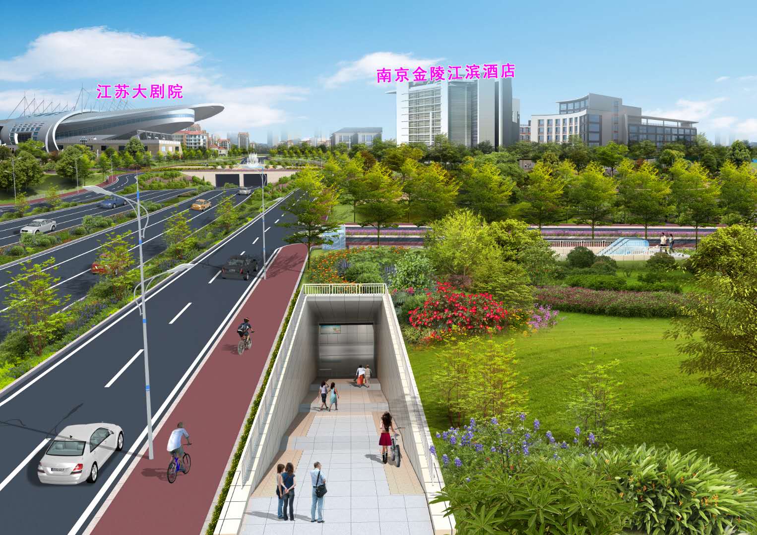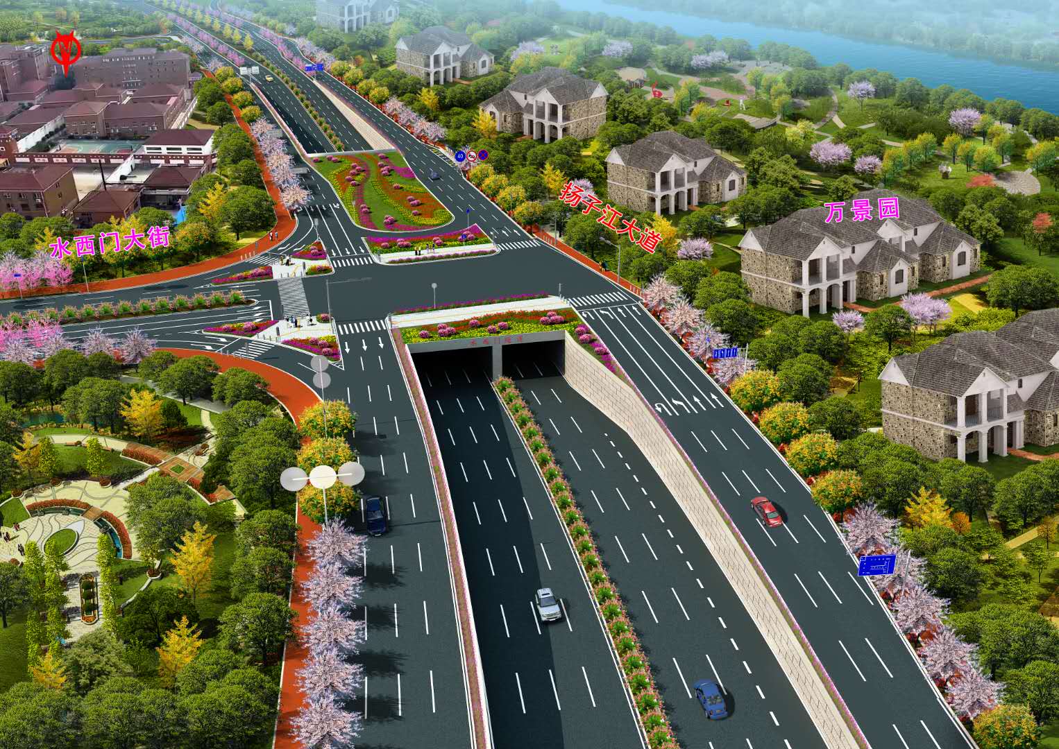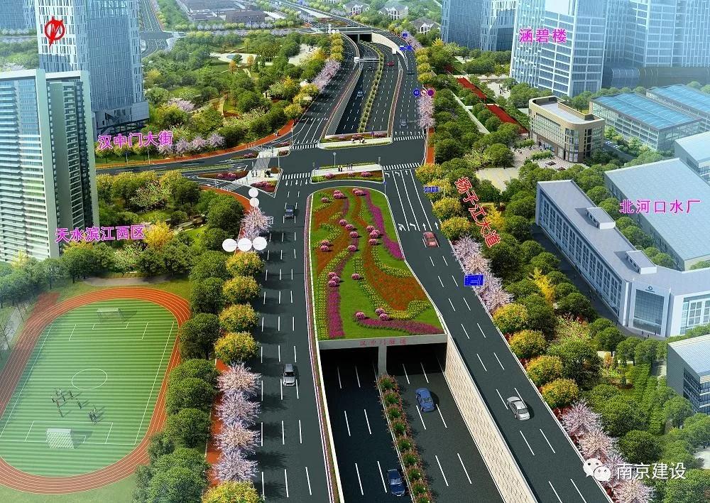 道路总体采用主线节点下穿的方案,在草场门大街、清凉门大街、汉中门大街和水西门大街交叉口设置4座节点隧道。
