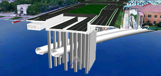 项目包含道路工程、城市隧道、综合管廊、人行过街通道、桥梁等多专业内容,特别是隧道穿越申遗保护区、长江防洪堤,综合管廊穿越既有道路、桥梁桩基、地铁车站、既有河道,人行过街通道顶管施工等复杂工况。