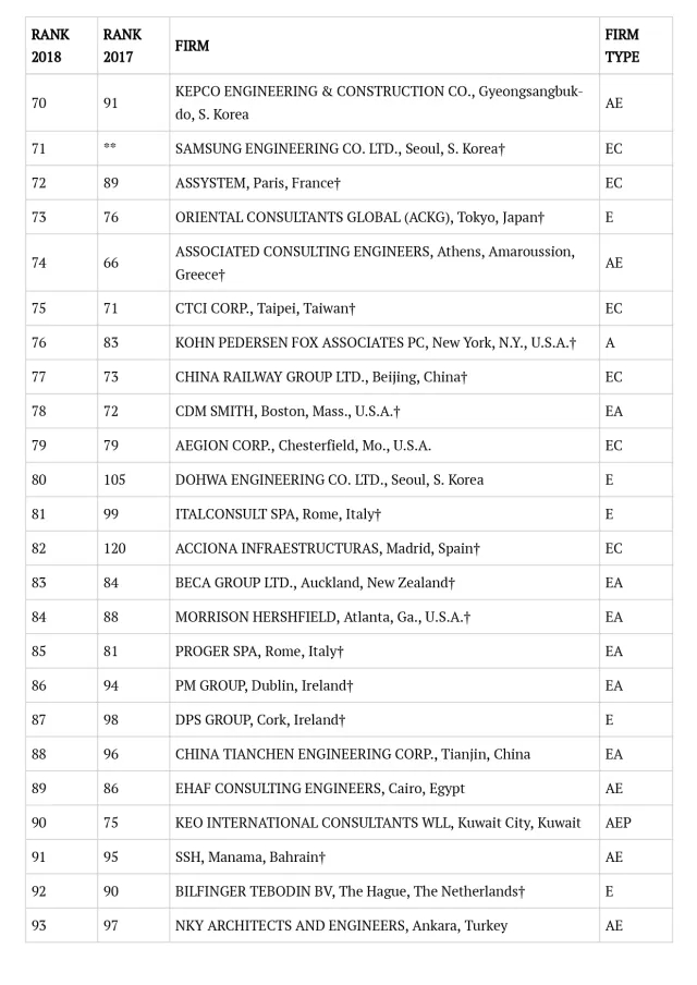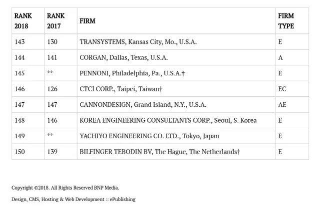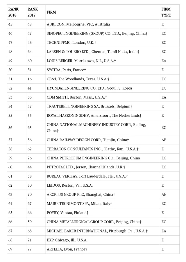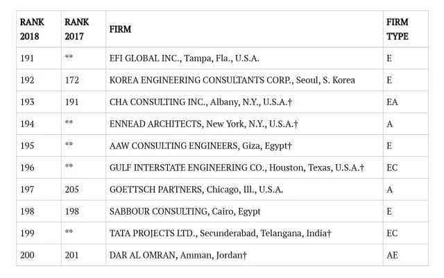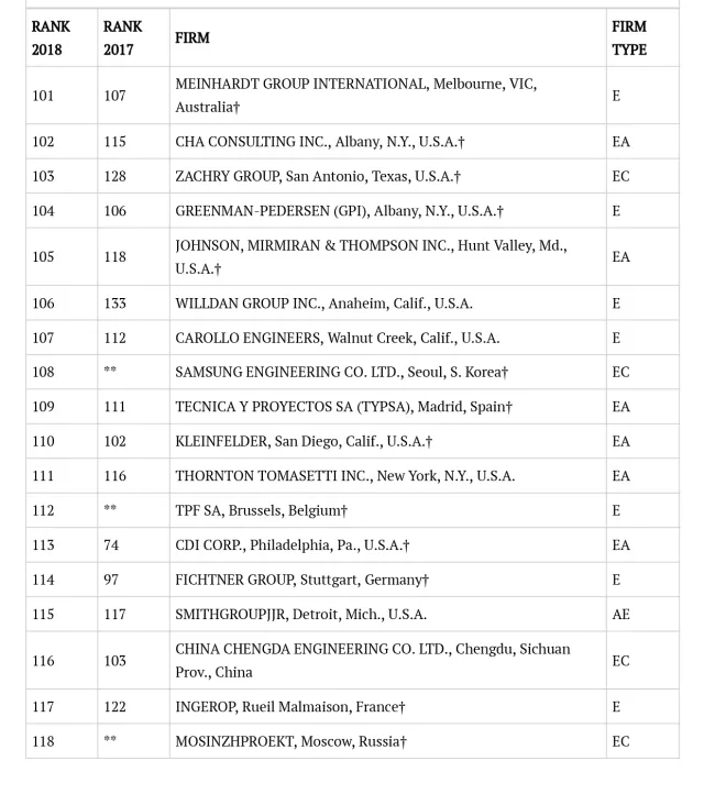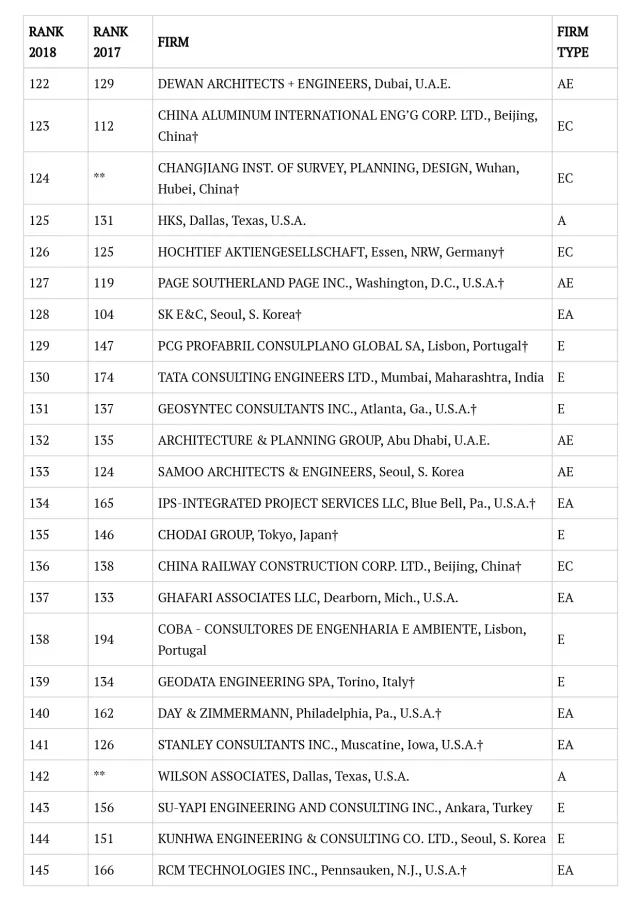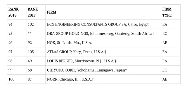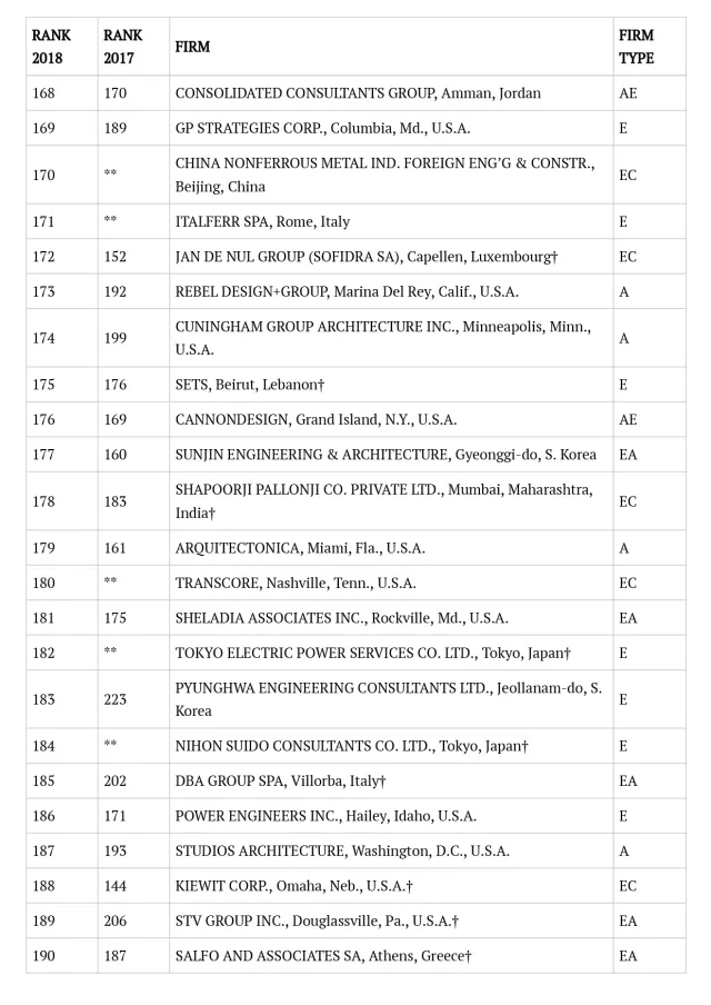 2018年ENR国际工程设计公司225强完整名单
