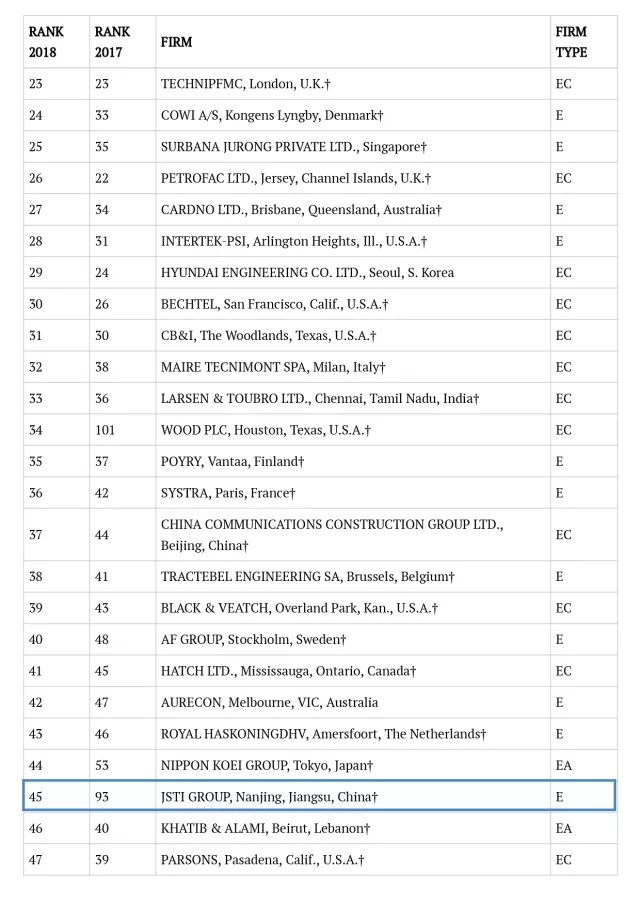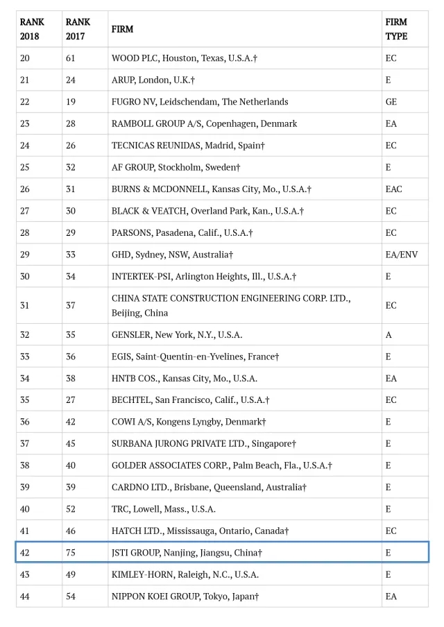 作为全球工程领域最权威的学术杂志,ENR每年以公正、透明的标准和程序,评选出工程设计领域的专业榜单,是国际工程界公认的、较为全面的排名,具有极高的权威性和广泛的影响力,倍受业界关注,被誉为工程领域的“晴雨表”。