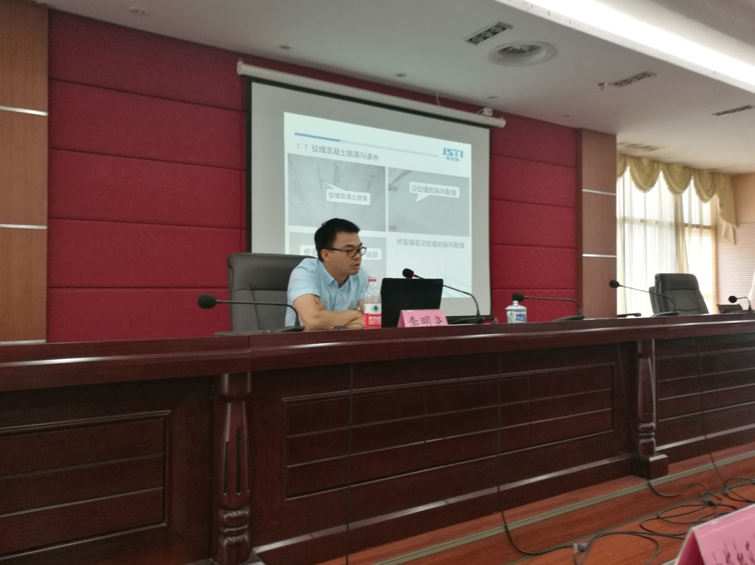 ▲刘邵平高级工程师主讲的“公路桥梁常见病害及养护技术”,指出贵州省公路桥梁典型病害,为实现预防性养护提供支撑,同时介绍了桥梁远程非接触图像检测、信息化数据采集、声呐水下检测、三维激光扫描、健康监测等新技术。