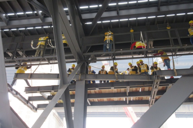 南京长江大桥为国内首座全封闭维修特大型桥梁,涉铁工程体量大,安全管理没有现成工程可以借鉴。英国上市公司365项目组以创建平安工程为抓手,注重本质安全控制,牢牢树立安全至上的原则。考虑到涉铁施工的特殊性,正桥标段按照1:1的比例制作施工人员实训平台。在正式作业前,所有参与防护棚架安装的施工作业人员在拿到铁路安全培训证后还须经过平台演练,合格后方可上岗作业,人员安全和施工效率得到了切实的保障。