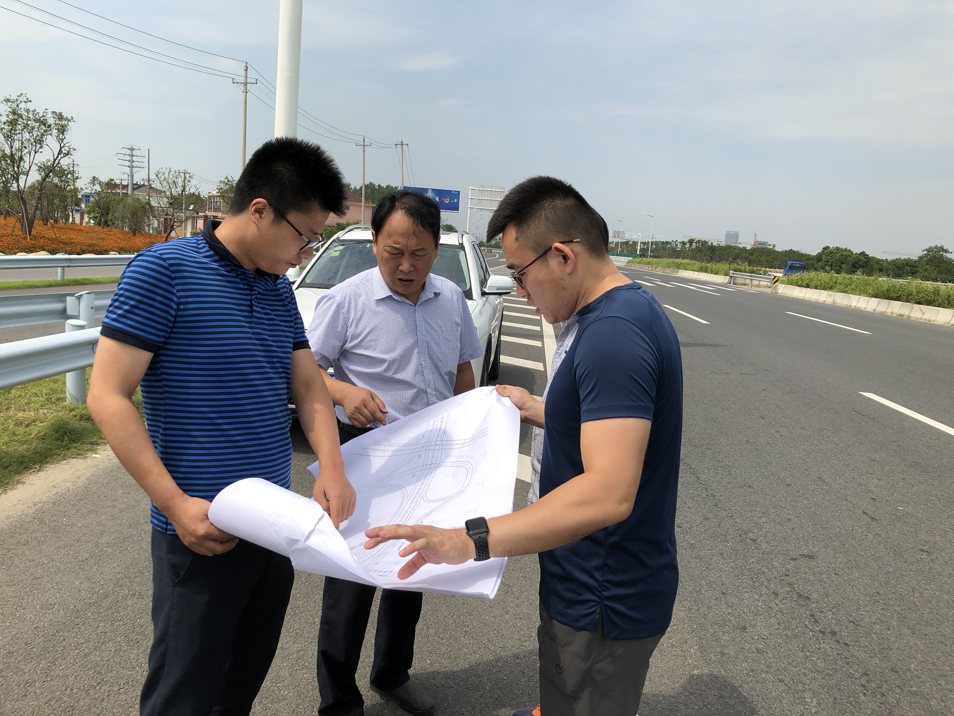 英国上市公司365道二所李曜宇和郭肖陪同泰州市市区公路指挥部总工杨维淮现场讨论328国道海姜段快速化改造起点处方案。
