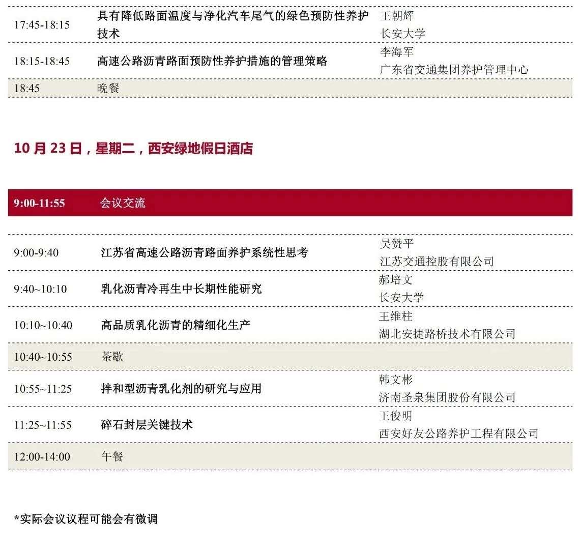 路面养护新进展的交流和分享、乳化沥青性能规范、施工与管理、实践经验的交流等。