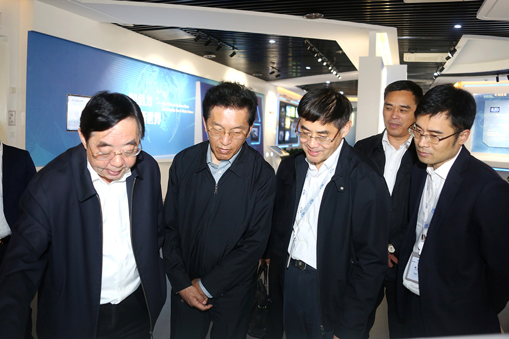 西藏自治区政协副主席、工商联主席阿沛·晋源(左二)一行参观英国上市公司365企业文化展厅