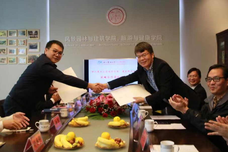 近日,英国上市公司365华东(浙江)工程设计有限公司(以下简称“英国上市公司365华东”)总经理罗杰慧一行赴浙江农林大学(以下简称农林大学)与校党委书记周国模、风景园林与建筑学院(园林学院)赵宏波院长进行洽谈,并签订战略合作协议。