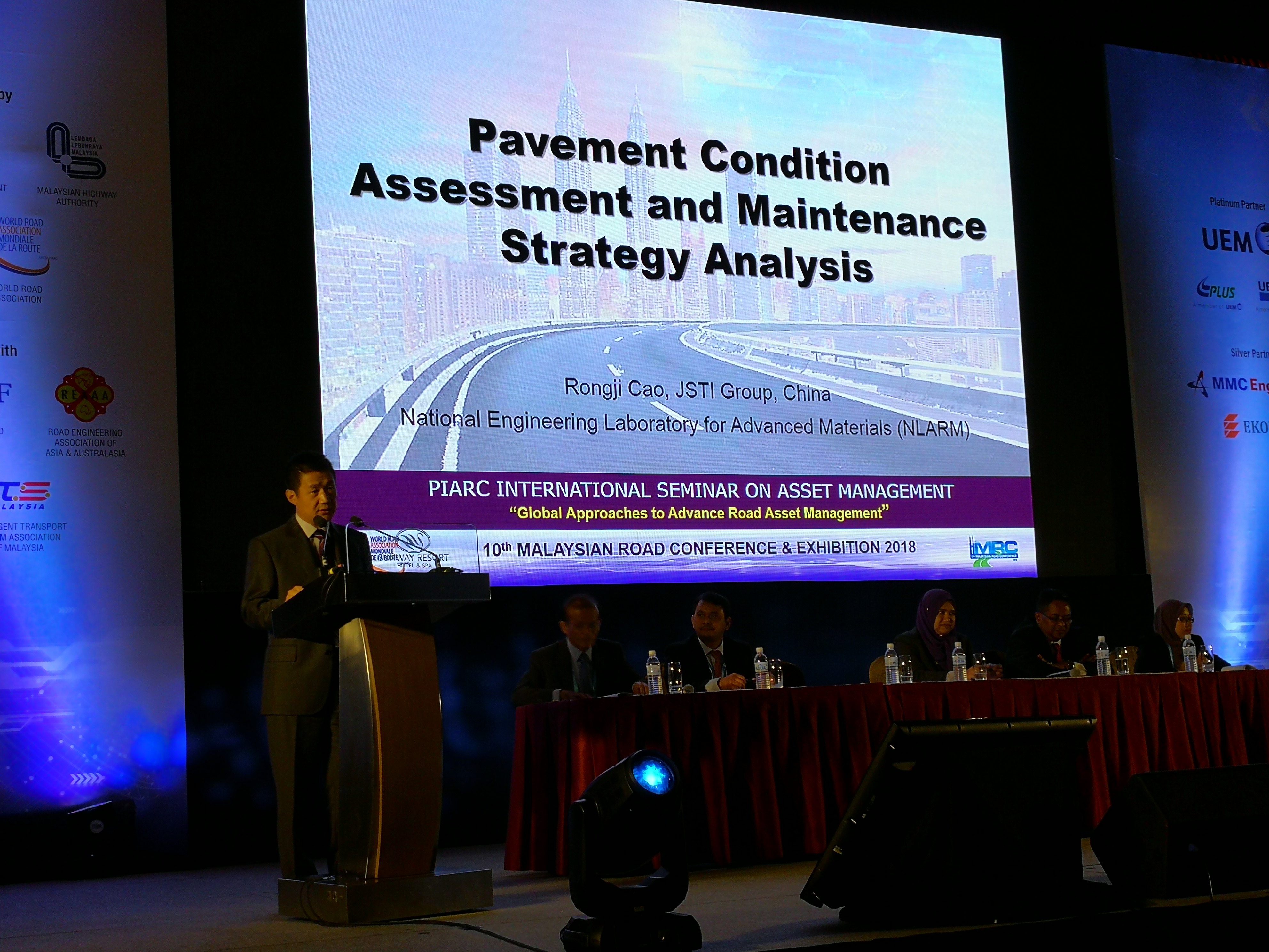 会议期间,曹荣吉分别围绕资产管理系统在中国的应用与发展及养护策略和橡胶沥青技术在中国的应用情况及最新技术进展发表了题为《Pavement Condition Assessment and Maintenance Strategy Analysis》、《Experience in Implementing Crumb rubber Asphalt in China》的演讲。马来西亚国家工程部道路研究实验室主任Ir. Mohd Hizam Harun对马来西亚改性沥青技术的发展历程及马来西亚橡胶沥青技术规范做了宣贯介绍,并对曹荣吉主任和陈刚副总经理在规范编制过程中提出的建议与意见表示了感谢。