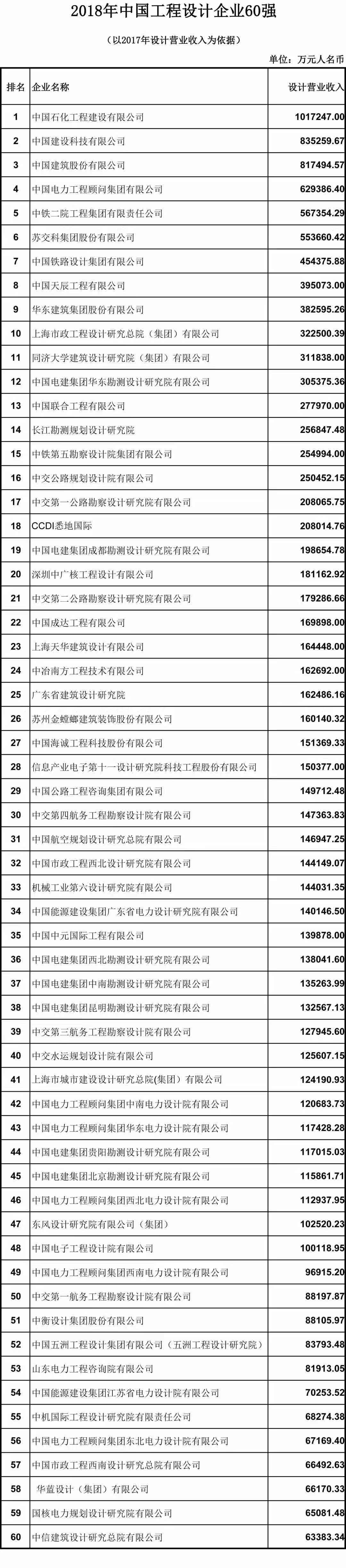 2018年度ENR/建筑时报“中国承包商80强和工程设计企业60强”排名,以2017年度企业工程承包和工程设计营业收入作为主要排名依据,因此该榜单体现了中国工程行业在经济“新常态”下所呈现的特点与发展趋势。英国上市公司365自2005年起已连续14年上榜且排名持续攀升。