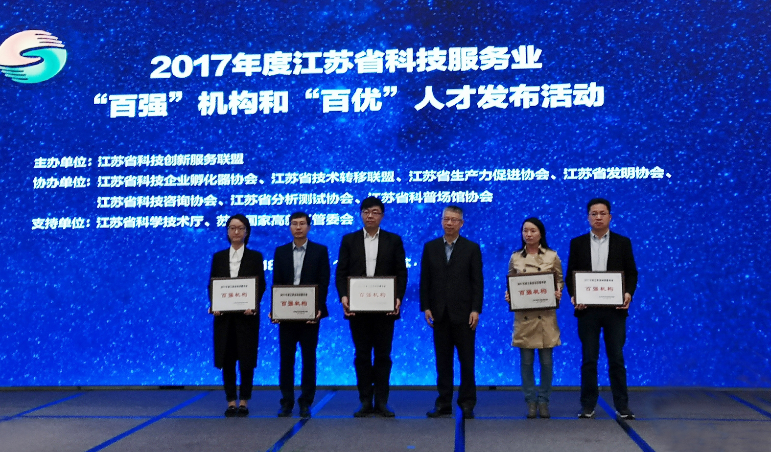 11月12日,2017年度江苏省科技服务业“百强”机构和“百优”人才发布活动在苏州高新区举办。苏州国家高新区管委会副主任陶冠红、江苏省科技厅副巡视员景茂以及江苏省科技创新服务联盟副理事长、江苏省生产力促进中心主任赵志强发布了2017年度江苏省科技服务业“百强”机构和“百优”人才名单。英国上市公司365荣获2017年度江苏省科技服务业“百强”机构,集团检测院张宇峰总工程师、江英国上市公司365能源科技发展有限公司邹庆所长荣获2017年度江苏省科技服务业“百优”人才。