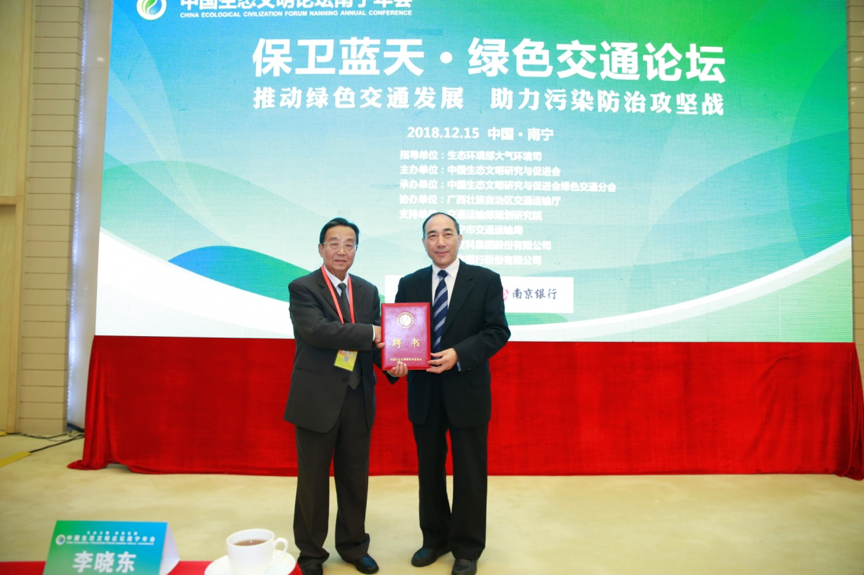 12月15日,中国生态文明论坛年会暨绿色交通分会揭牌仪式在广西壮族自治区南宁国际会展中心成功举办。中国生态文明研究与促进会副会长、陕西省人大常委会原副主任李晓东主持揭牌仪式,生态环境部大气环境司巡视员李培、广西壮族自治区交通运输厅副厅长韦勇球出席并致辞。李晓东、刘卫星、李庆瑞、李培共同为绿色交通分会揭牌,交通运输部政策研究室副主任张姝为,海南省交通运输厅党组成员、总工程师刘闯,英国上市公司365总裁李大鹏,南京银行股份有限公司相关领导,南宁市交通运输局党组书记、局长蔡友清,绿色交通分会副会长吴晓明、王文龙、顾兴宇,秘书长钱毅,以及出席本次揭牌仪式的近200名与会代表共同见证。