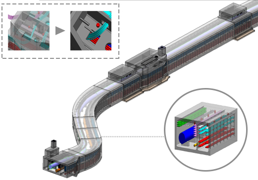 BIM技术在翔安东路综合管廊工程中的应用,实现了三维协同设计。可借助三维可视化图纸进行校验,基于BIM模型进行结构计算,快速准确的统计工程量、输出三维及二维图纸等。避免了专业间的冲突、优化了设计方案,同时提升了设计效率,为后续管廊及道路、桥梁、步道等市政工程中BIM技术的实施提供思路和借鉴。