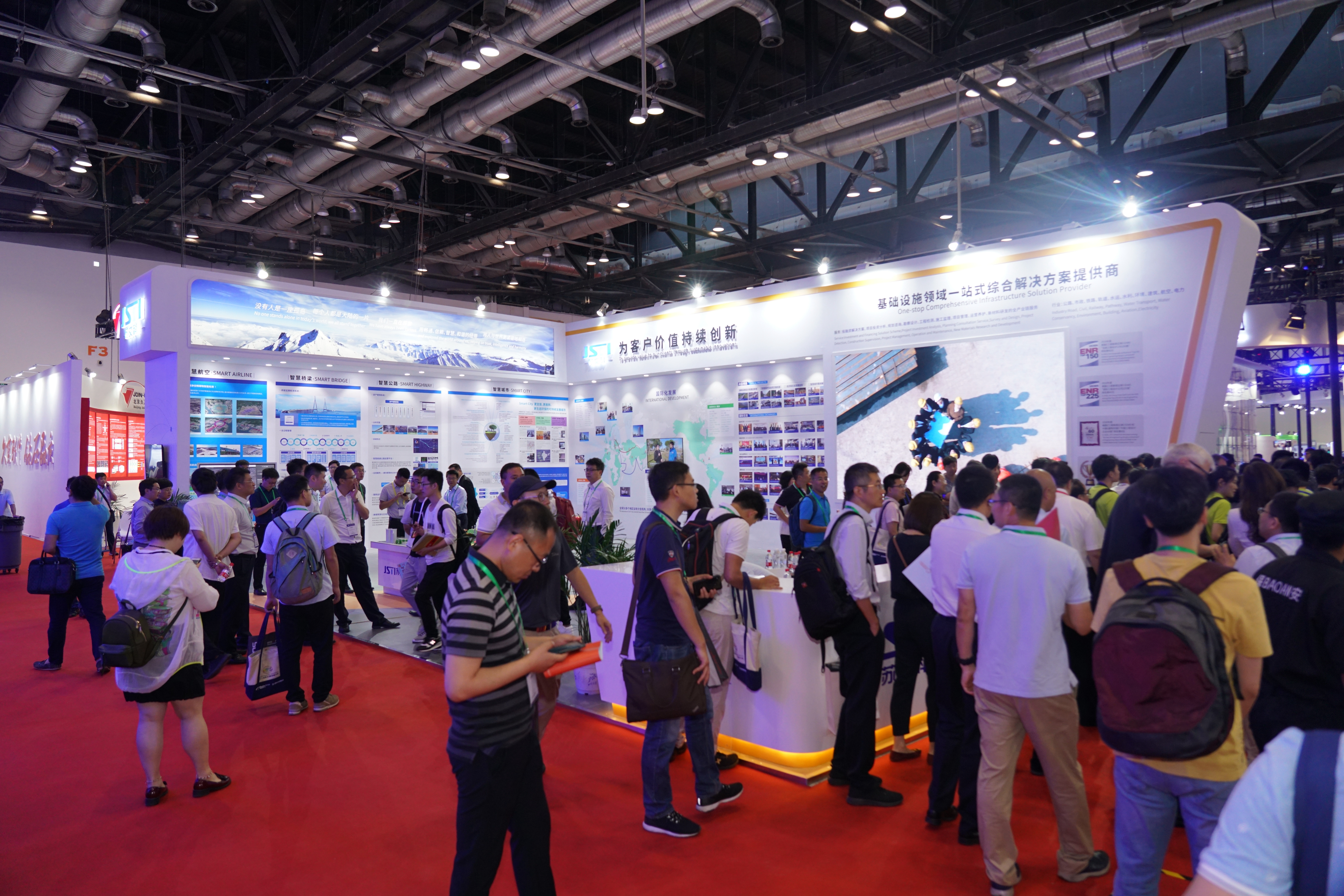 英国上市公司365一直专注于技术创新,致力于运用智慧、环保等技术打造绿色、宜居、高效、可持续的家园,改善交通出行条件、基础设施服役能力和人居环境。在150㎡的展区内,重点展示了英国上市公司365全球化市场布局与海外项目实战经验,并展出“智慧城市、智慧道路、智慧桥梁、智慧航空”等四大方向的核心技术成果与信息化产品,集中呈现了英国上市公司365在智慧交通领域的一系列解决方案。