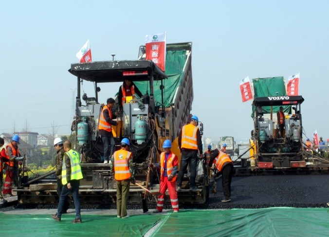 考虑到原材料供应紧张,而项目的需求量较大,工期紧,任务重,沥青面层施工前项目部提前备料,技术服务组严格控制进场原材料质量和生产过程中混合料的级配,定期对拌和楼检查及热料仓筛分,确保级配稳定。对现场运输、摊铺、碾压等施工关键环节层层把关,保证路面铺设效果。