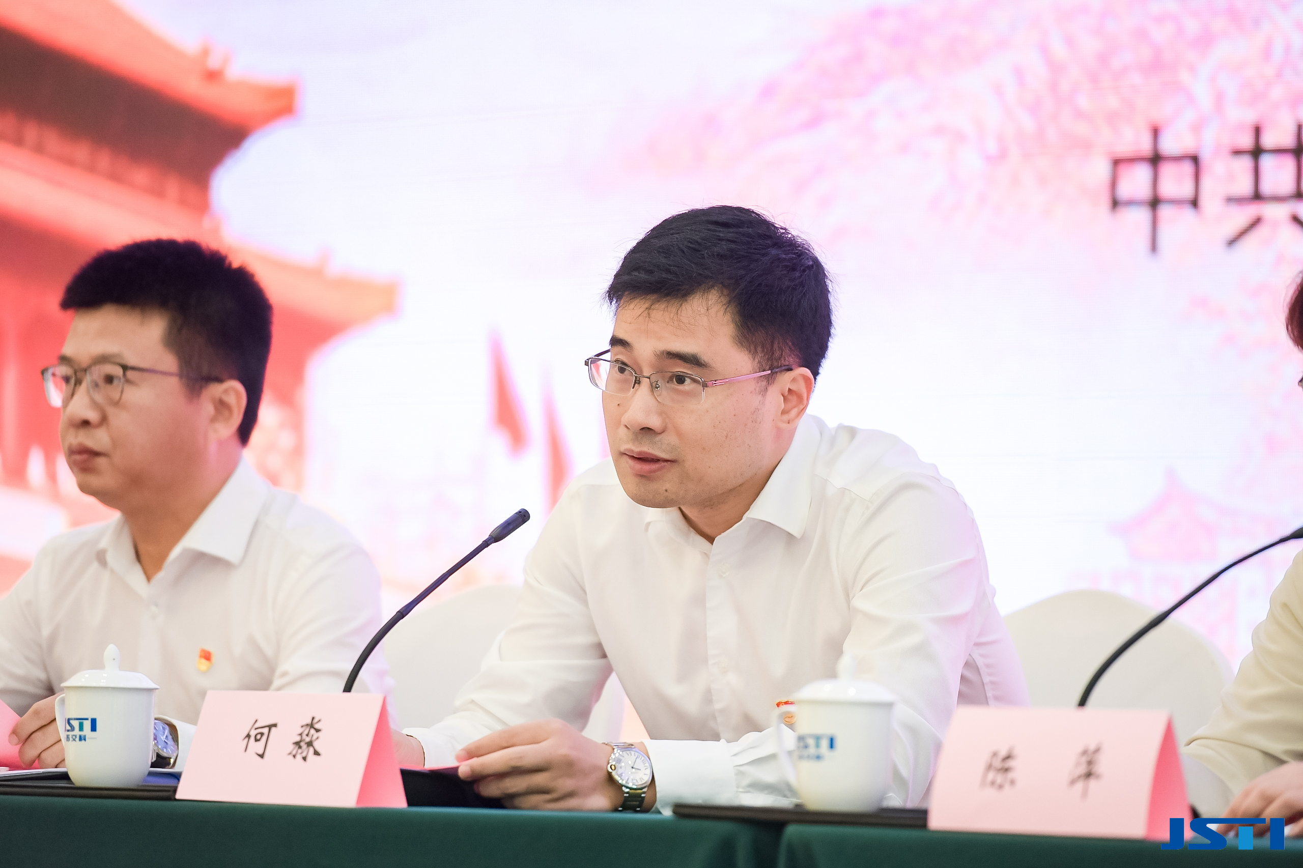 ▲党委书记何淼汇报党建工作成果
