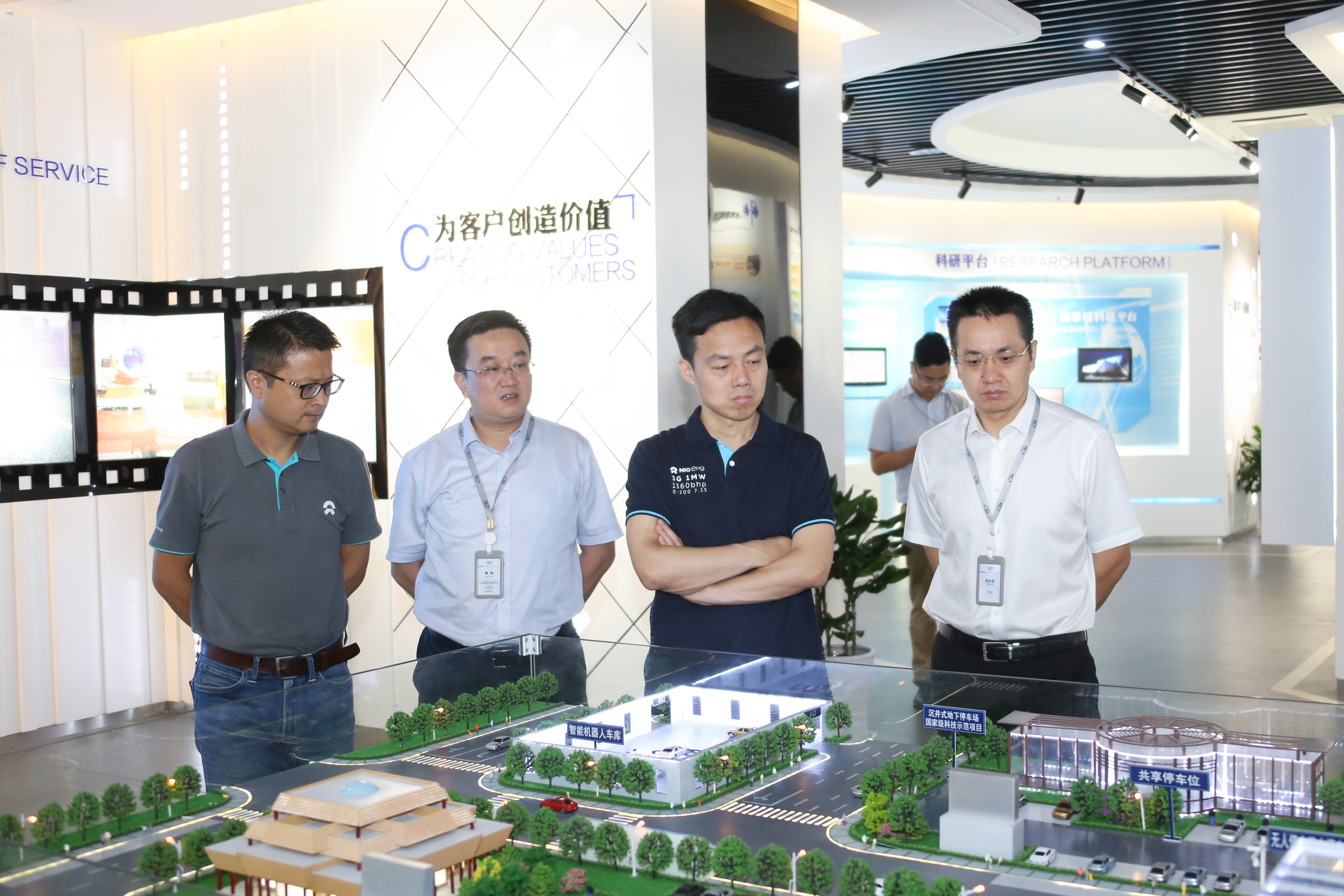 ▲ 蔚来汽车副总裁沈斐(左三)一行参观英国上市公司365企业文化展厅