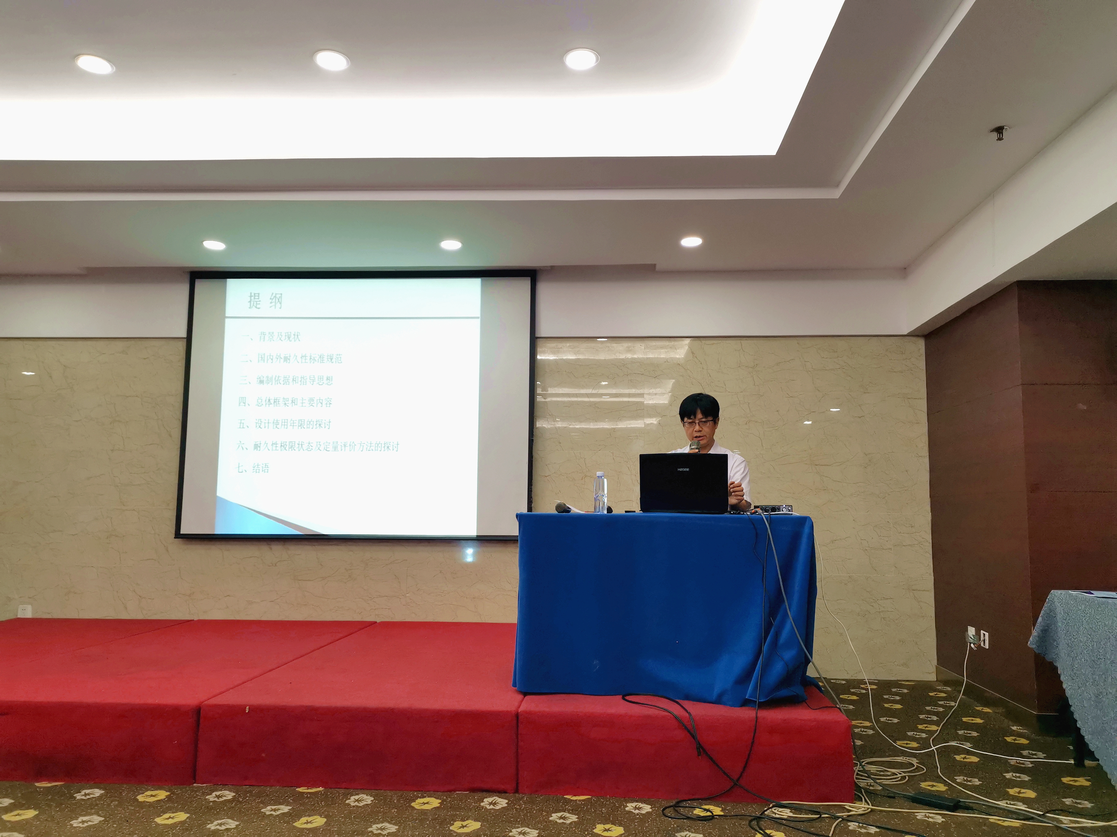 中交公路规划设计院副总工赵君黎介绍了公路桥梁设计标准体系以及耐久性问题;东南大学教授刘钊介绍了桥梁结构耐久性设计方法;东南大学教授张云升介绍了防腐蚀附加措施技术要求;英国上市公司365高工张国荣介绍了环境类别和材料耐久性能。编写组人员和与会人员针对矿物掺合料用量范围、预应力设计要求和外加电流阴极保护施工要求等问题作进一步交流。