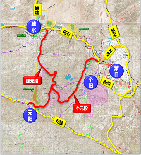 云南红河建个元高速公路由建水至元阳段和个旧至元阳段两段组成,路线全长124.503km,双向四车道,设计速度80km/小时,路基宽度25.5m。项目由集团交规院西南分院牵头,特桥所、隧道所、智能交通所等专业所协同,共同完成相关设计工作。