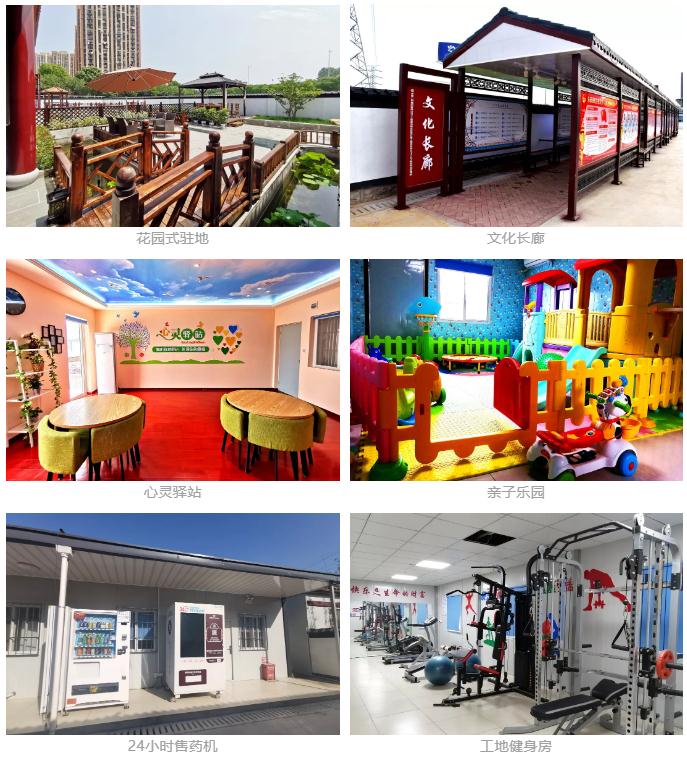 围绕“集中化布局、物业化管理、市场化运营”三大理念,像建设家园一样建设项目驻地,切实提升一线员工的幸福指数,从源头上消灭驻地安全风险,提高工作积极性和工作效率。驻地注重工人生活及人性化需求,除传统驻地建设内容外,还设置了24小时智能售药机、工地健身房、员工超市、阳光晾衣棚、足球篮球场等基础设施,搭建了工地文化休闲长廊;考虑到施工单位中外地工人较多,驻地还设立了亲子乐园,便于工地职工与子女团聚时共享亲子时光。