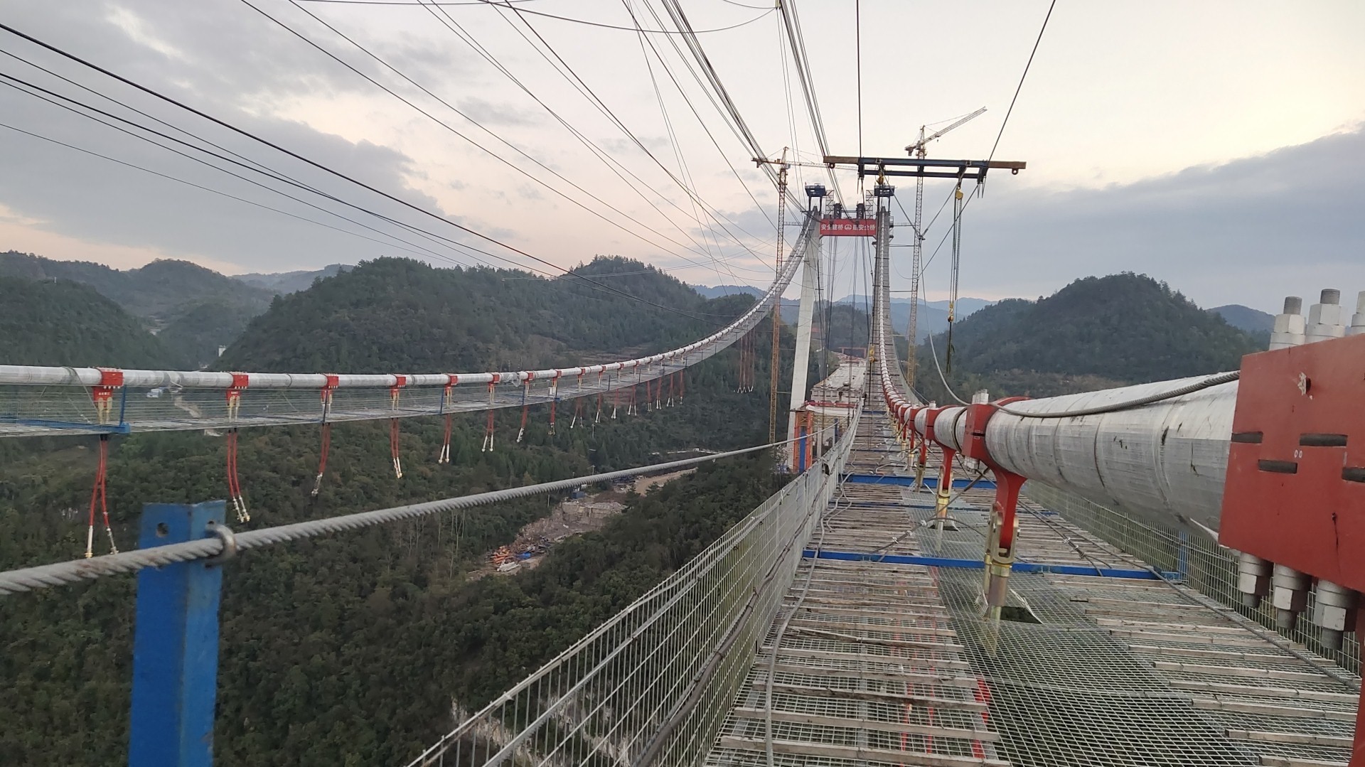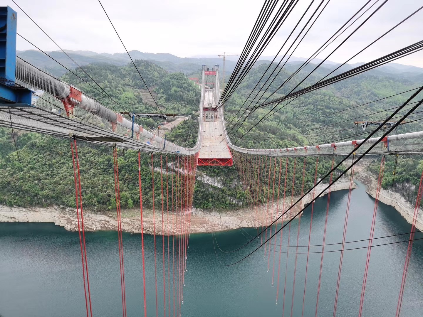 ▼ 飞龙湖乌江大桥主缆架设完毕
